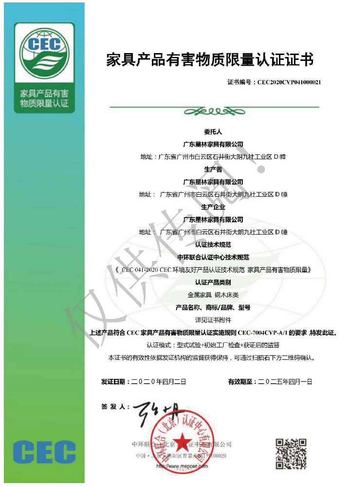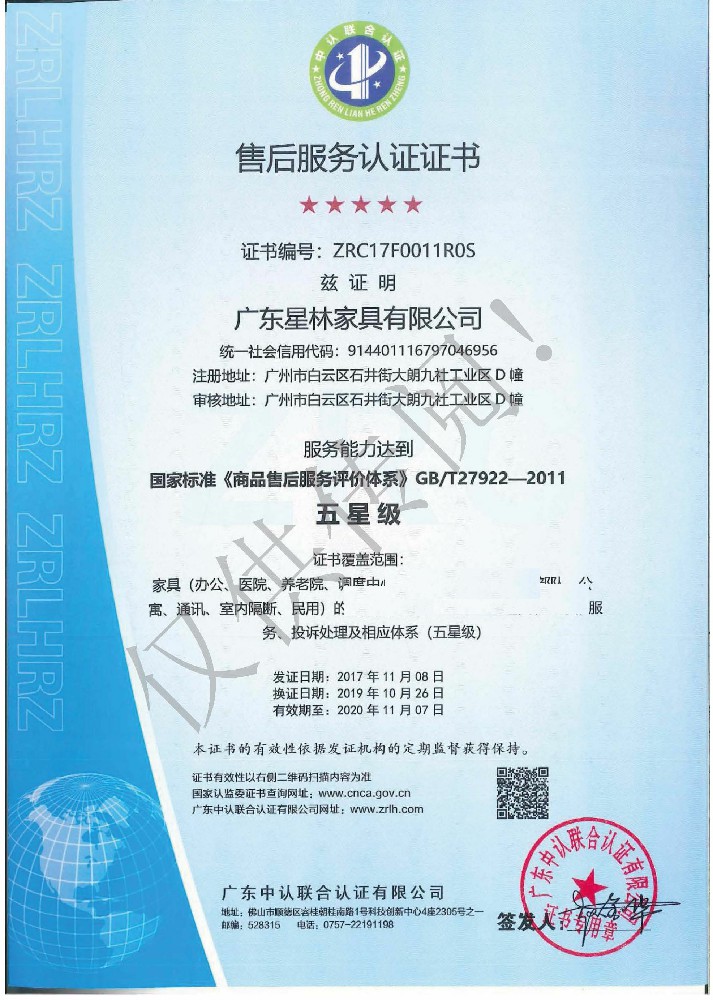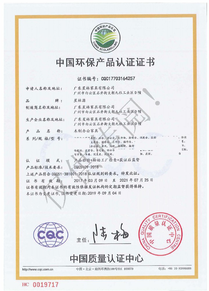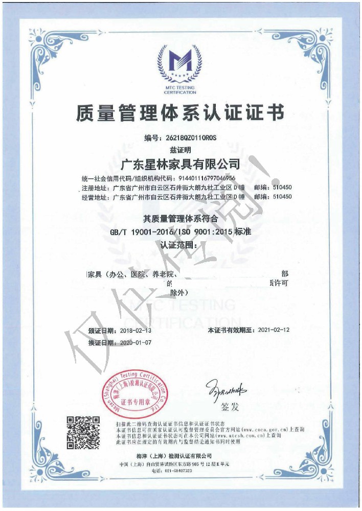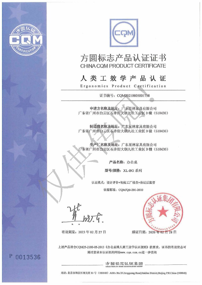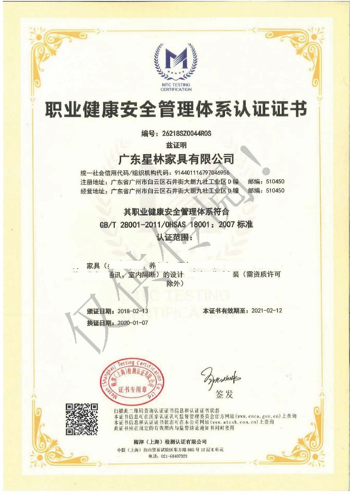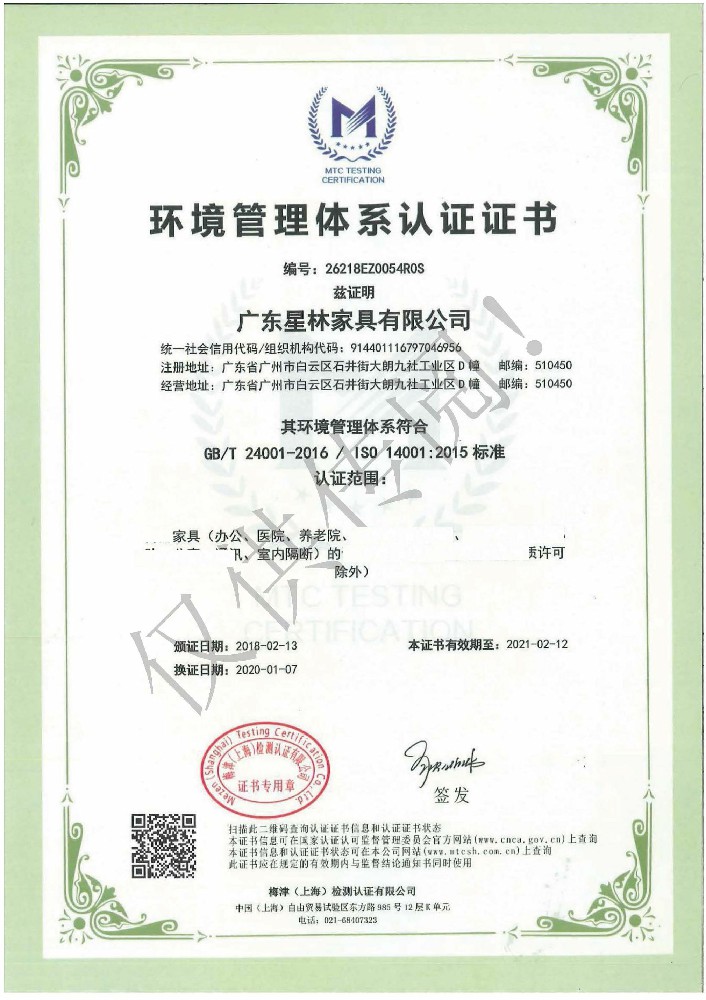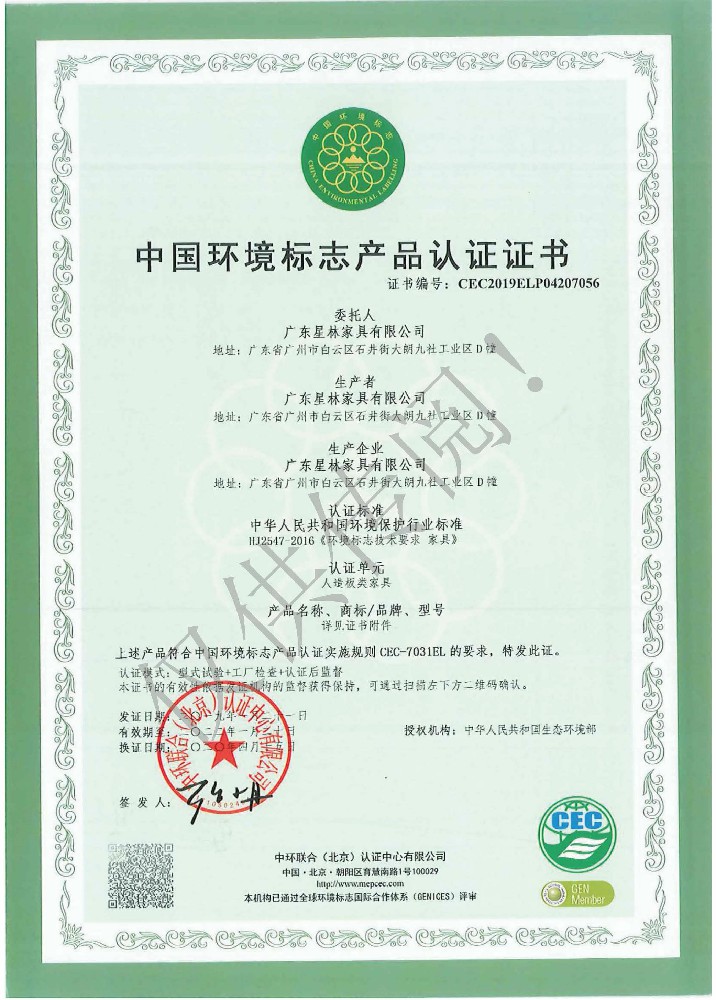 廣東星林家具有限公司創(chuàng)建于家具盛世之期,專業(yè)致力于辦公家具、醫(yī)療家具、養(yǎng)老家具的開發(fā)、設(shè)計、生產(chǎn)。公司率先通過ISO9001質(zhì)量管理體系認證和ISO14001環(huán)境管理體系認證及職業(yè)健康安全管理體系認證,從而獲得了中環(huán)聯(lián)合(北京)認證中心有限公司頒發(fā)的“中國環(huán)境標志產(chǎn)品認證證書(十環(huán)認證)”等。